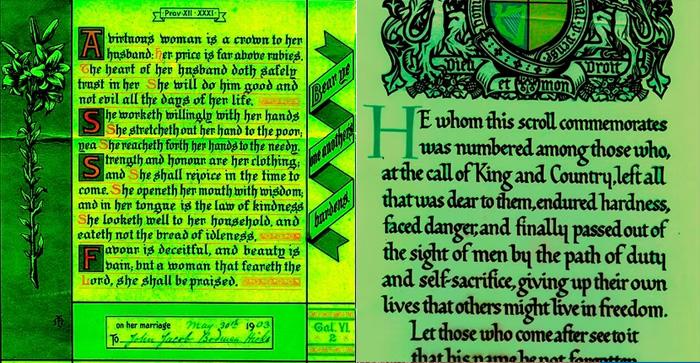 The first, shown here on the left, is the certificate presented on 30th May 1903 to Ellen Harrell from The Girls Friendly Society Marriage on the occasion when she married John Jacob Bodman Hicks.